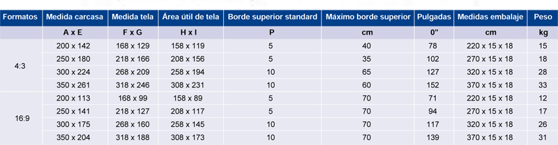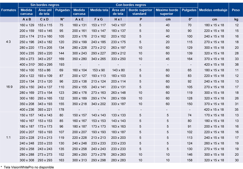 Tela MaxWhite (blanco mate) con ganancia 1.1. Muy resistente y fácil de limpiar.