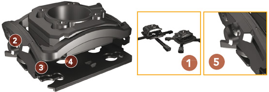 5Q-LOCK ™ Rápida palanca de liberación. Proporciona una rápida conexión / desconexión