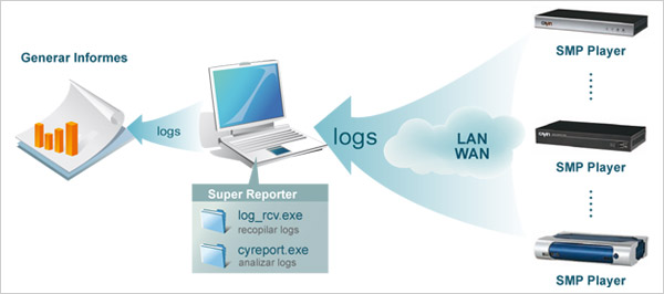 Super Reporter es un software profesional que ayuda a los administradores a generar informes del status del sistema de cartelería digital.