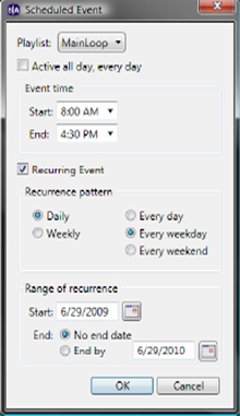 Reproduzca en días específicos, días de la semana, semanas, etc.