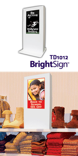El nuevo BrightSign TD1012 es una solución de pantalla sobremesa "todo incluido" que muestra la señalización digital en la ubicación más necesaria. No requiere PC, conexión a la corriente, ni cableado, lo que permite la reproducción de imágenes y vídeos en alta resolución en los mostradores de las tiendas, expositores, estanterías, etc. Con batería recargable (proporciona hasta 12 horas de reproducción) y compatibilidad con redes inalámbricas para mantener el contenido siempre actualizado.