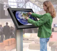 Aproveche el gran impacto de los elementos audiovisuales para emitir sus contenidos mediante canales propios de información a través de kioskos digitales, mesas táctiles y totems.