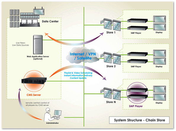 • Todos los sistemas SMP están integrados con un servidor CMS como solución de estructura de cliente-servidor.