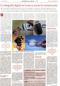 Apenas han pasado 4 años desde que aparecieron las primeras cámaras digitales y su evolución en el mercado es imparable. Las nuevas cámaras aparecidas recientemente tienen ya unas prestaciones muy parecidas a las cámaras de toda la vida. Incluso incorporan mejoras como mayor calidad de imagen, facilidad de uso, más capacidad y menor precio. Algunas tienen funciones que van más allá del concepto de fotografía como la posibilidad de grabar audio con cada foto o secuencias de vídeo.