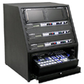 Cajón deslizante para joysticks instalados en el ProductionView Rack Enclosure.
